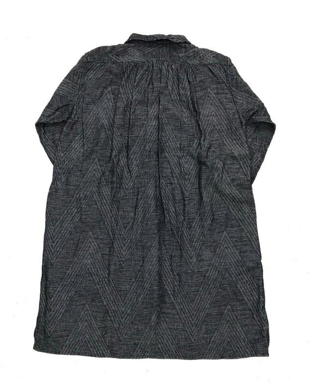 開襟のボタンダウンのような形で、今回は裏にボタンを一つ増やしたことで上まで閉めて着る事も出来ます。