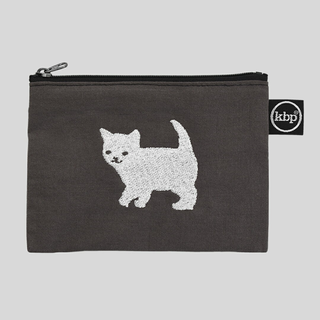 kitty bunny pony Happy Kitty Embroidery Pouch グレーをベースによちよち歩く子猫の姿を刺繍で描いたポーチです。