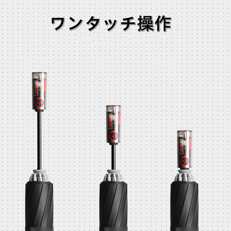 【ワンタッチ自動開閉】: 弊社の傘はワンタッチ式の折り畳み傘であり、片手でボタンを押すだけで傘がサッと自動的に開閉ができます。