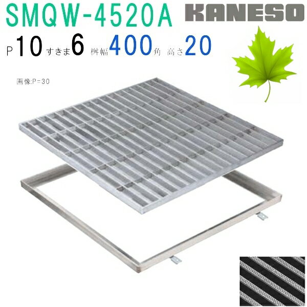 カネソウ SUSグレーチング 滑り止め模様付集水桝用 (注番:SMQW-4520A-P=10枠付) すきま6mm 寸法:450×450×20「法人・事業所限定,直送元」【代引き不可】