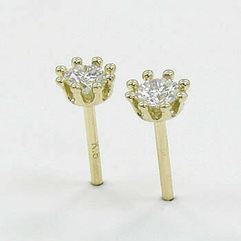 トータル 0.26カラット18金イエローゴルド(青金)/18金ゴールド2種類からお選びいただけます。0.13ctx2ダイヤtypeAAAA(VS2/H)八本爪ミルククラウンピアス(太さ0.9mmx長さ10mm芯・シリコンキャッチ付)